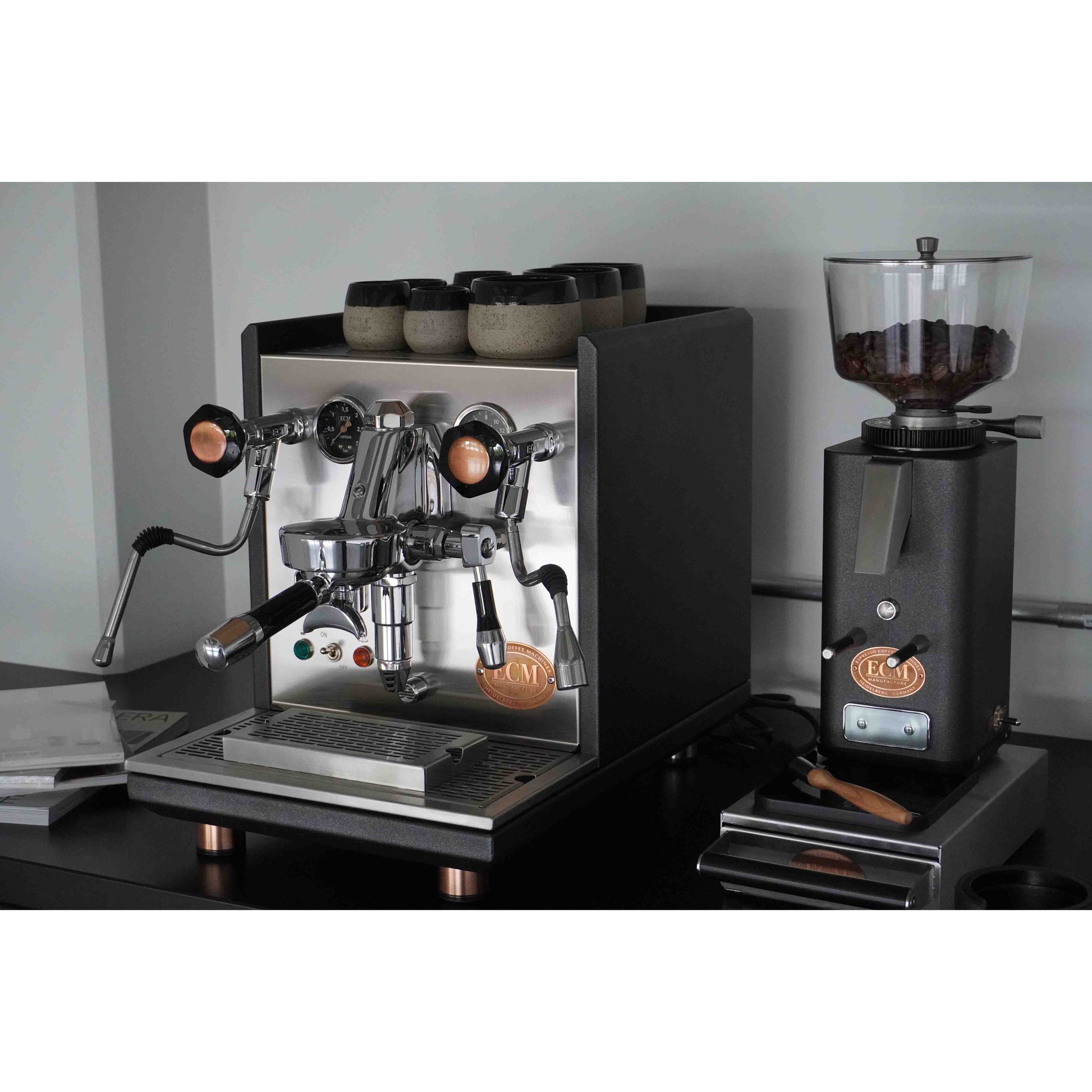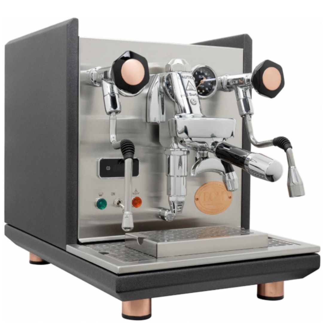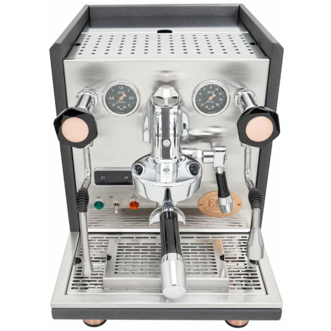 إذا كنت من خبراء الإسبريسو وترغب في تحسين جودة قهوتك بما يتجاوز ما تقدمه المقاهي المحلية، فإن آلة ECM Synchronika هي الخيار الأمثل لك. فهي توفر دقة وقوة فائقة تُمكّنك من تحضير القهوة في ظل ظروف قاسية للغاية. كما أنها من أجمل آلات الإسبريسو المتوفرة في السوق، ويعزز مظهرها الفريد من نوعه، بمزيجها من اللون الرمادي الفحمي والنحاسي، هذا التميز. في نهاية المطاف، عندما يتعلق الأمر بآلات الإسبريسو ذات الغلايات المزدوجة من مجموعة E61 للاستخدام المنزلي، فإن آلة ECM Synchronika هي على الأرجح الخيار الأمثل.