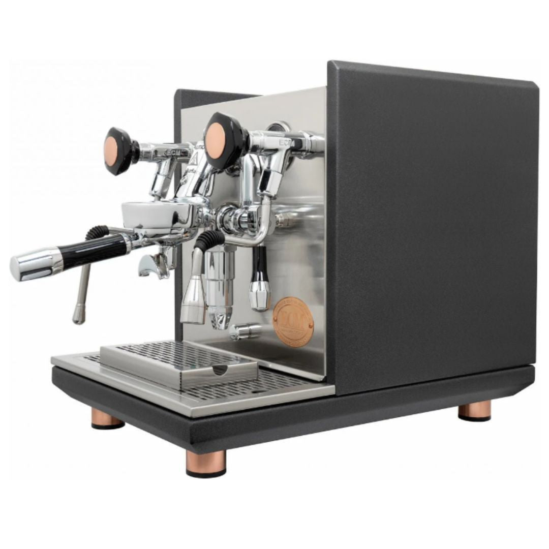تُعتبر ماكينة الإسبريسو ECM Synchronika Heritage Line من أكثر الآلات تطورًا في فئتها السعرية، حيث تتميز بغلايتين. يجمع إصدار Heritage من هذه الماكينة الشهيرة بين الدقة والجودة اللتين أكسبتها شهرة واسعة، ويأتي بتصميم أكثر فخامة وإثارة، يتضمن هيكلًا فريدًا من نوع أنثراسيت، ولمسات نحاسية، ونظام أزرار للتحكم بالبخار والماء الساخن بدلًا من مقابض التحكم التقليدية.