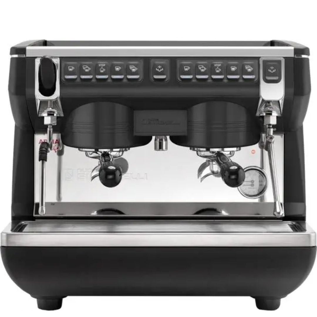 للمجتهدين في تحضير قهوتهم. إنها آلة قهوة مزودة برافعتين، تتميز بإخراج عالي وأداء ممتاز، ويشتهر بها أكثر من مئة ألف باريستا حول العالم. تتميز آلة Appia Life Compact برأسين للتحضير، وتتميز بتصميم عصري وموثوقية عالية. نوصي بهذه الآلة للشركات الصغيرة، مثل المقاهي المبتدئة، لأنها تُنتج قهوة ممتازة.